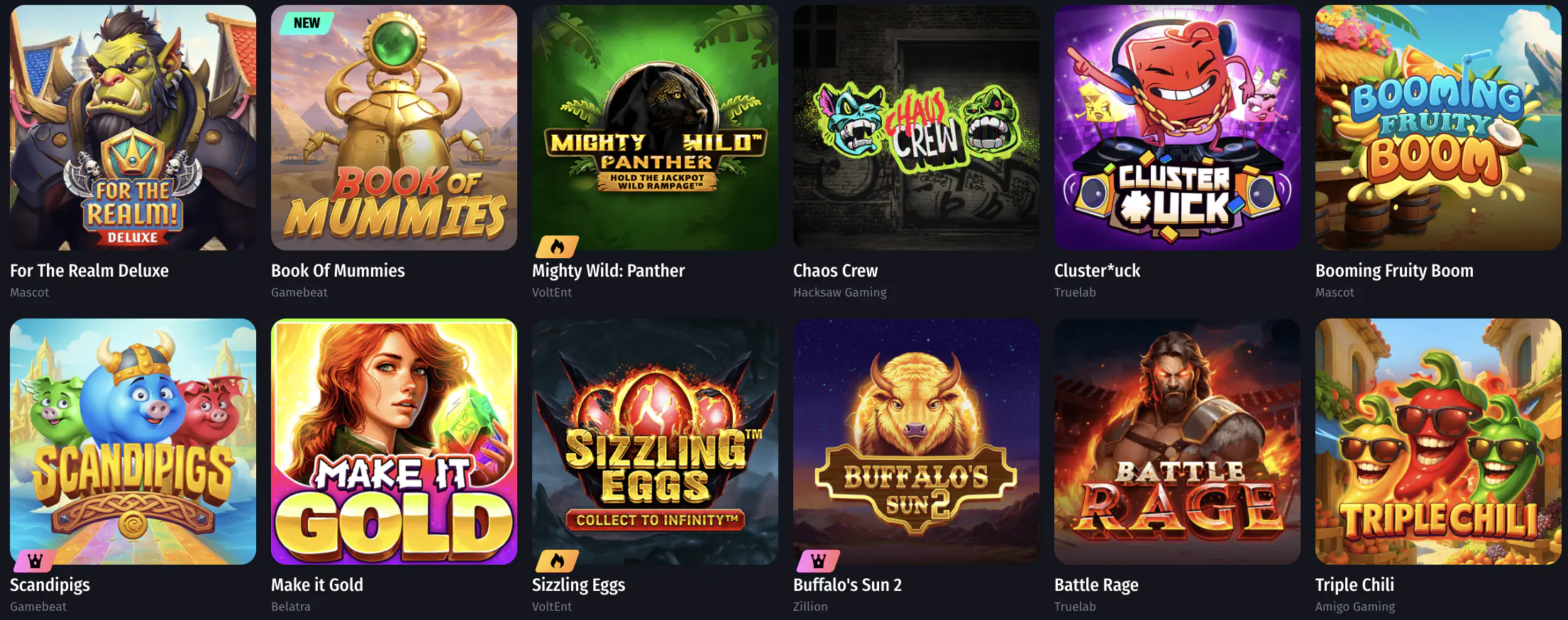 Our provider list is extensive. It includes Pragmatic Play, Play’n GO, Bgaming, Evoplay, Netgame, and so many more. In fact, we work with 65 well-established and reputable game providers. The aim is to ensure you can confidently play online and focus on winning.
